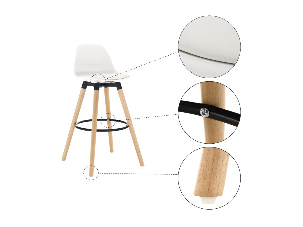 Materiál: ekokoža/ masívne drevo/kov/plast Oderuodolnosť textílie podľa testu Martindale: 100 000 oderov Farba: biela/buk Rozmery (ŠxHxV): 38x45x91 cm Výška sedu: 68 cm Hĺbka sedu: 32 cm Šírka sedu: 38 cm Šírka chrbtovej opierky: 30 cm Výška chrbtovej opierky: 24 cm Nosnosť: 110 kg Dodávané v demonteBalenie (počet kusov : 1)