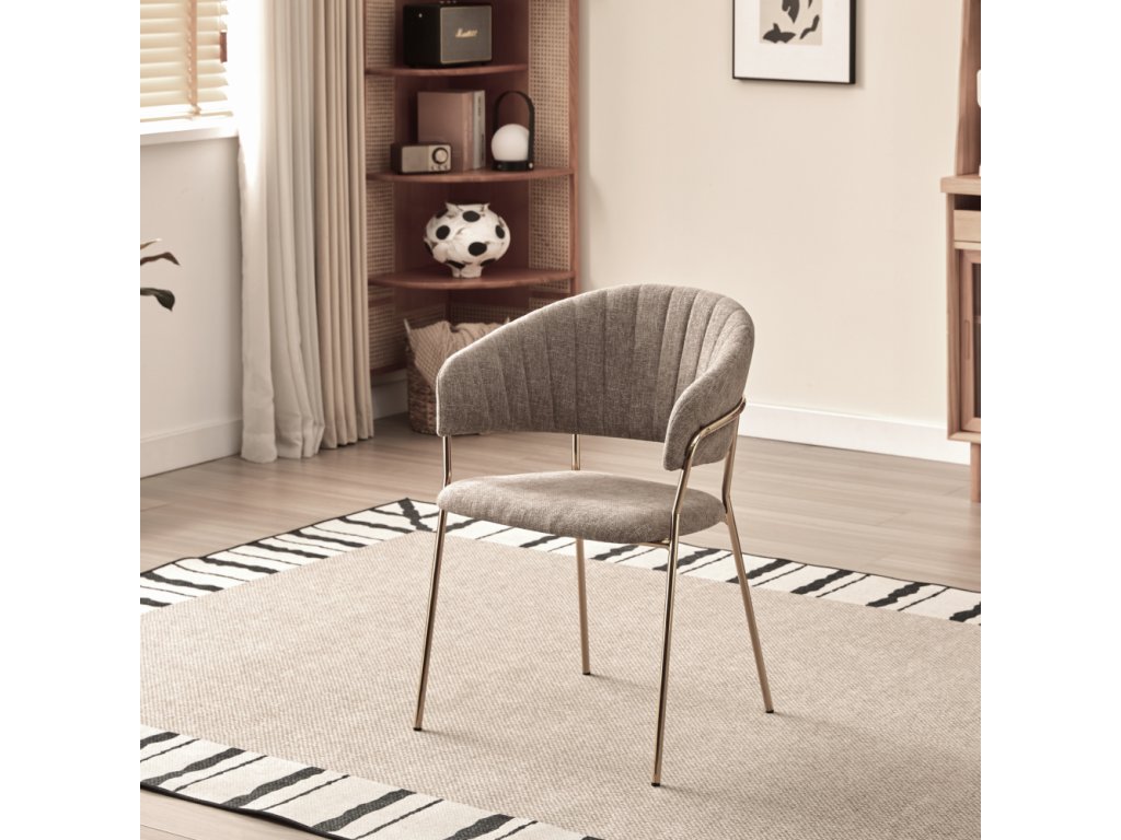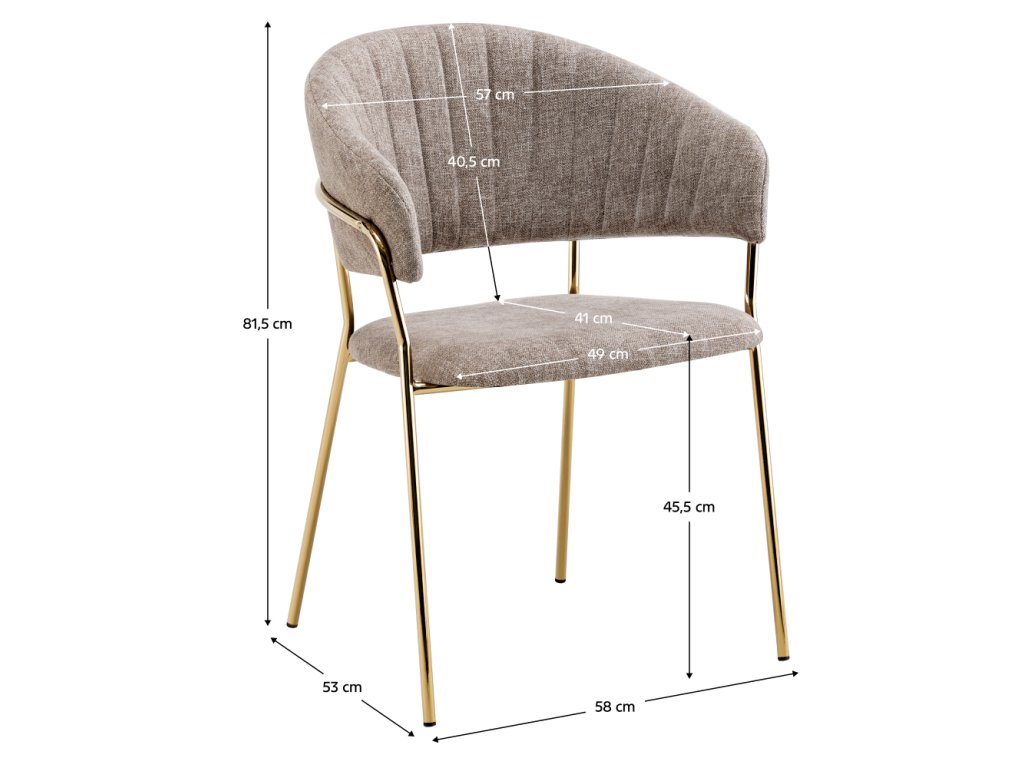 Materiál: látka/chróm Oderuodolnosť textílie podľa testu Martindale: 75 000 oderov Farba: hnedá/gold chróm zlatý Rozmery (ŠxHxV): 58x53x81,5 cm Výška sedu: 45,5 cm Hĺbka sedu: 41 cm Šírka sedu: 49 cm Výška chrbtovej opierky: 40,5 cm Šírka chrbtovej opierky: 57 cm Nosnosť: 100 kg Kovová konštrukcia Dizajnové Prešívané Dodávané v demonteBalenie (počet kusov : 1)