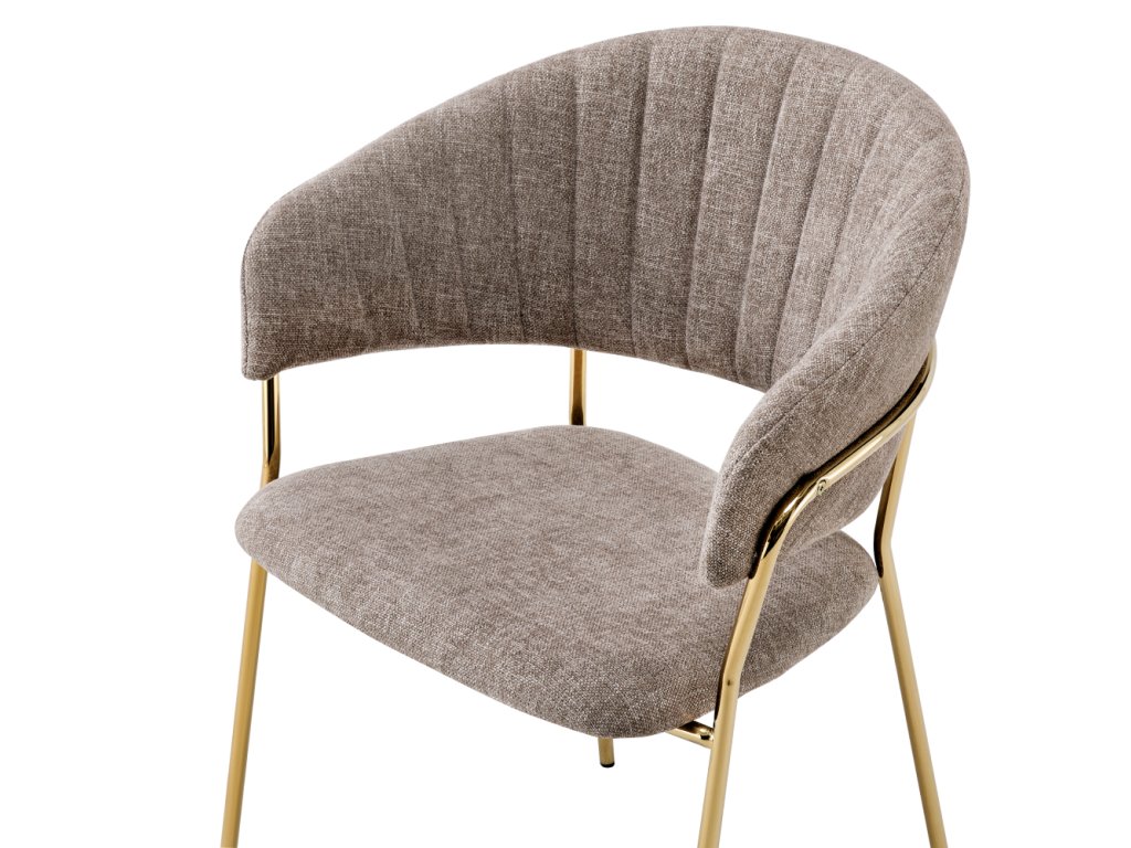 Dizajnové jedálenské kreslo, hnedá látka/gold chróm zlatý, DASMIN TYP 1