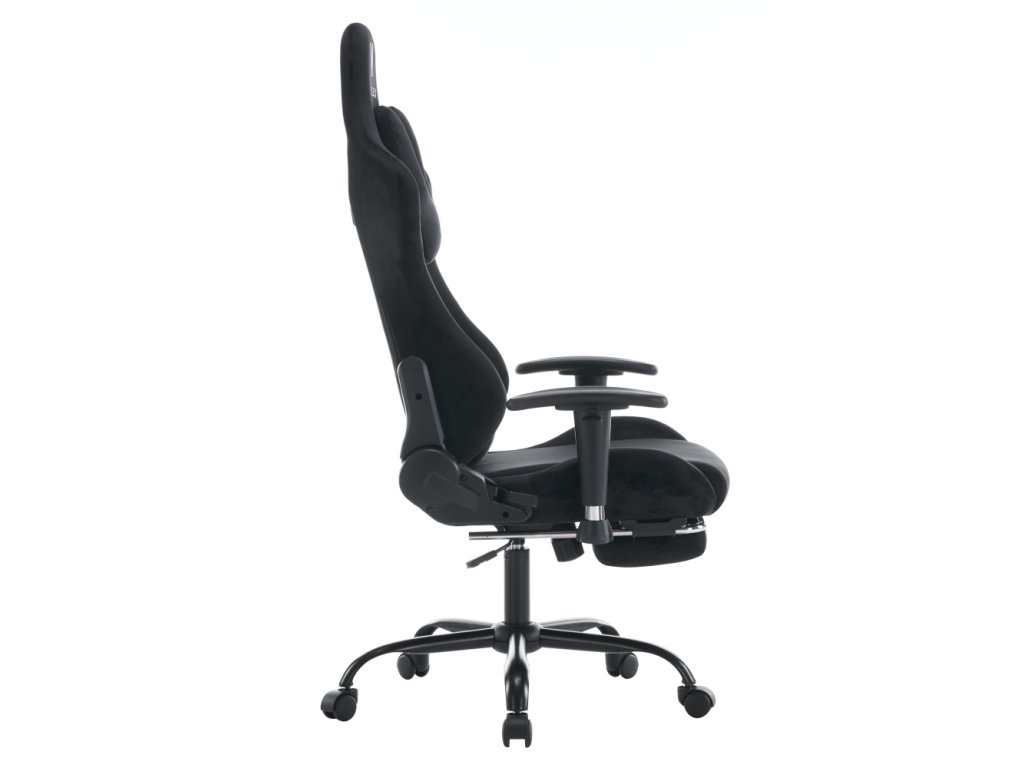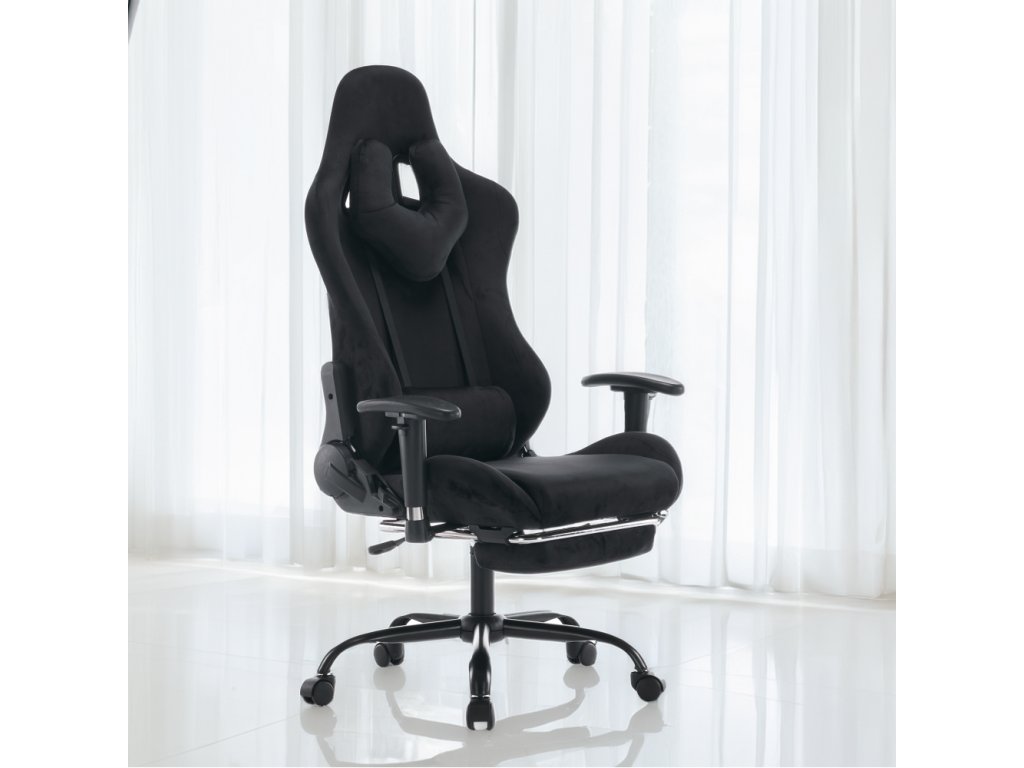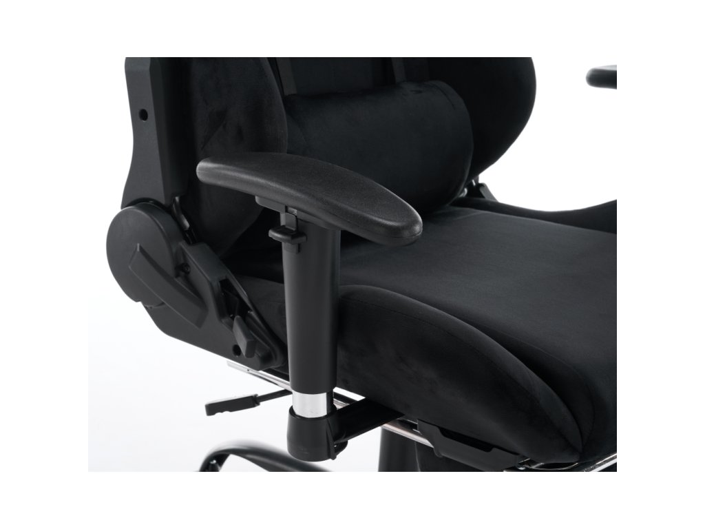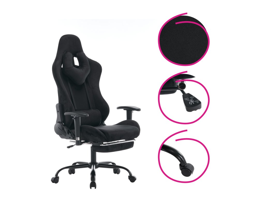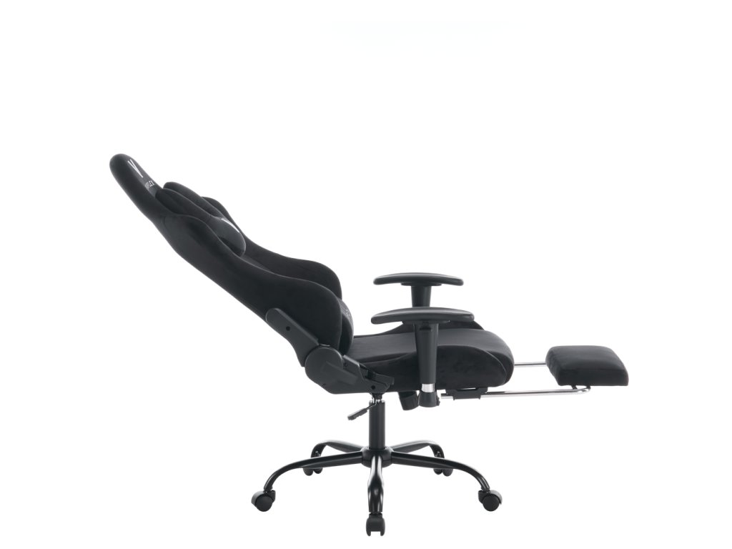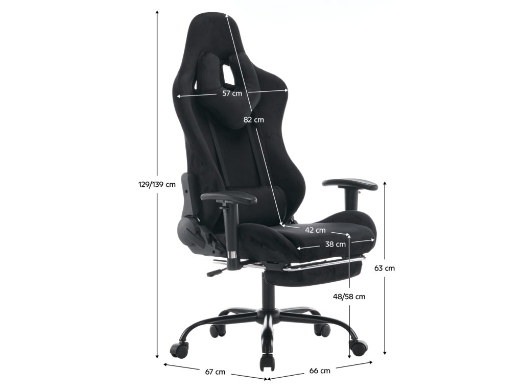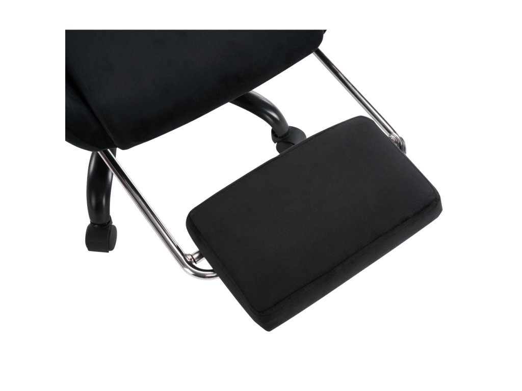 Materiál: látka Velvet/chróm Oderuodolnosť textílie podľa testu Martindale: 15 000 oderov Farba: čierna Rozmery (ŠxHxV): 66x67x129-139 cm Výška sedu: 48-58 cm Šírka sedu: 38 cm Hĺbka sedu: 42 cm Výška chrbtovej opierky: 82 cm Šírka chrbtovej opierky: 57 cm Výška od zeme po opierku na ruky: 63 cm Nosnosť: 150 kg Hmotnosť: 19 kg Nastaviteľná výška sedu Čalúnené opierky na ruky Nastaviteľná opierka hlavy Polohovacia opierka chrbta má sklon 90-180° Odnímateľná opierka hlavy a bedrová opierka Výsuvná podnož Otočné Mechanizmus hojdania Univerzálne kolieska Vhodné na tvrdé aj mäkké podlahy Päťramenná podstava Dodávané v demonteBalenie (počet kusov : 1)