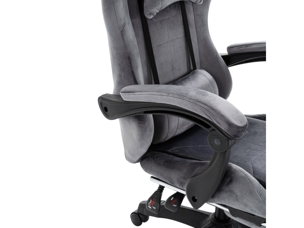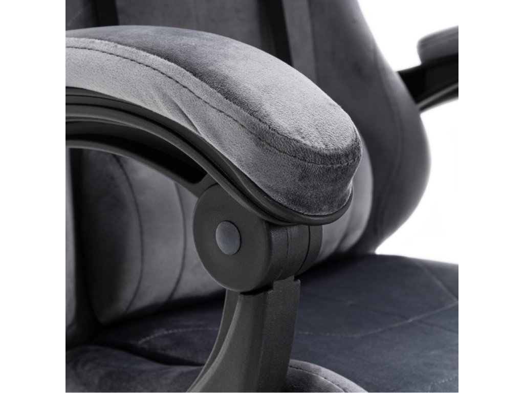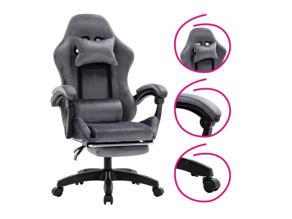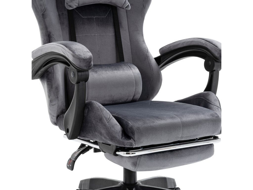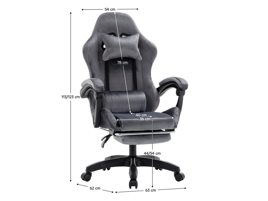 Materiál: látka/plast Oderuodolnosť textílie podľa testu Martindale: 15 000 oderov Farba: sivá/čierna Rozmery (ŠxHxV): 63x62x113-123 cm Výška sedu: 44-54 cm Šírka sedu: 36 cm Hĺbka sedu: 40 cm Výška chrbtovej opierky: 78 cm Šírka chrbtovej opierky: 54 cm Nosnosť: 130 kg Hmotnosť: 14 kg Nastaviteľná výška sedu Čalúnené opierky na ruky Nastaviteľná opierka hlavy Polohovacia opierka chrbta má sklon 90-135° Odnímateľná opierka hlavy a bedrová opierka Výsuvná podnož Otočné Mechanizmus hojdania Univerzálne kolieska Vhodné na tvrdé aj mäkké podlahy Päťramenná podstava Dodávané v demonteBalenie (počet kusov : 1)