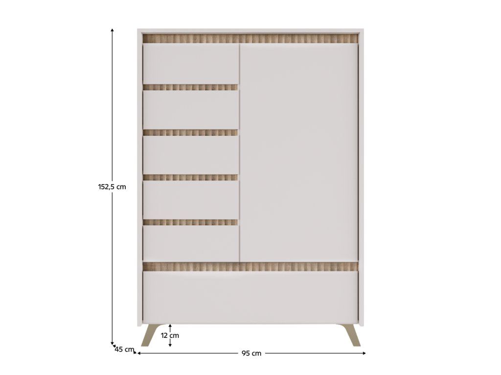 Materiál: laminovaná DTD/fóliovaná MDF/PVC fólia Farba: kašmír/dub sonoma Rozmery (ŠxHxV): 95x45x152,5 cm Hrúbka materiálu: 1,6-1,9 cm Jednodverová Výklopná skrinka Päť zásuviek Police Na nožičkách Farba nožičiek: prírodná Výška nožičiek: 12 cm Plnovýsuvné guľôčkové ložisko Pánty Hrana: papier impregnovaný termosetovými polymérmi/PVC Hrúbka materiálu ABS: 0,5 mm Hrúbka drevovláknitej dosky zadná strana/dno zásuvky: 0,3 cm Farba zadná strana/dno zásuvky: biela Dekoratívne frézovanie Bez úchytiek Moderný dizajn Dodávané v demonteBalenie (počet kusov : 4)