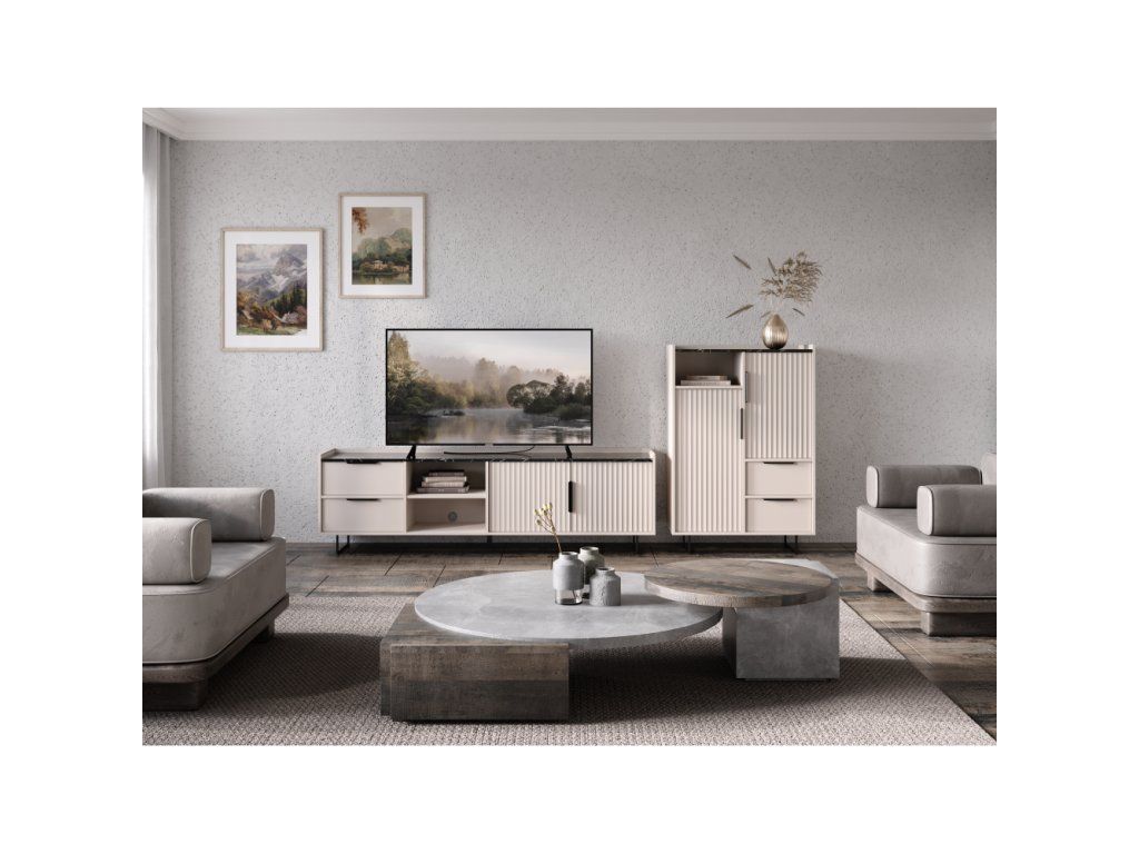 Komoda, kašmír/tmavý mramor, FRESIO KOM2D2S
