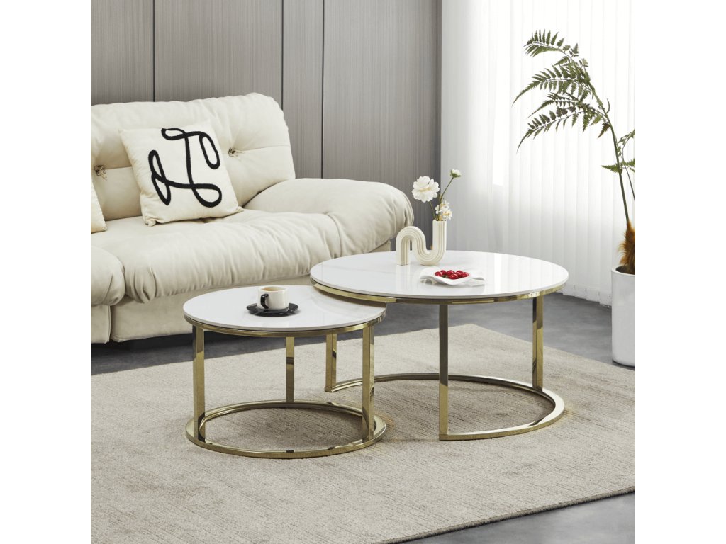 Konferenčné stolíky, set 2 ks, imitácia mramoru/gold chróm-zlatý, DEVNET 3 NEW
