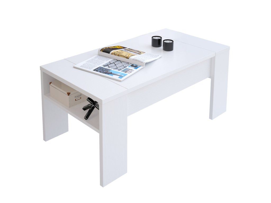 Konferenčný stolík PULA Materiál: DTD laminovaná Farba: biela Rozmery (ŠxHxV): 98,4x50,2x42,6/54,1 cm Hrúbka materiálu vrchný plát: 2,2 cm Hrúbka materiálu korpus: 1,6 cm Výškovo nastaviteľná vrchná doska S ručným zdvíhacím mechanizmom S úložným priestorom pod vrchnou doskou S policou Dodávané v demonteBalenie (počet kusov : 1)