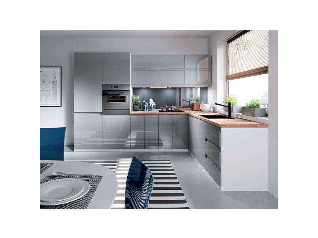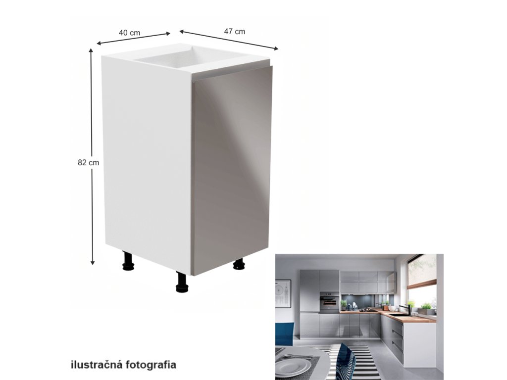 Spodná skrinka, biela/sivá extra vysoký lesk, pravá, AURORA D40