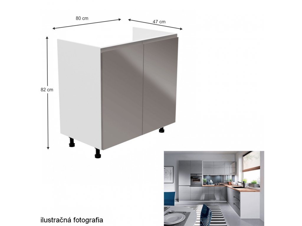 Drezová skrinka, biela/sivá extra vysoký lesk, AURORA D80Z