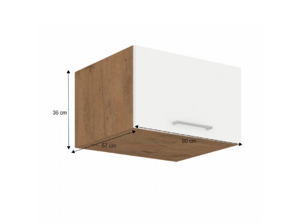 Horná skrinka VEGA 60 NAGU-36 1F Materiál: DTD laminovaná/MDF Farba: dub lancelot/biela extra vysoký lesk HG Rozmery (ŠxHxV): 60x57x36 cm Dodávané v demonte Možnosť dokúpenia pracovnej dosky dub lancelot v cene 49 Eur/bm. Možnosť dokúpiť univerzálny drez LAY ONBalenie (počet kusov : 1)