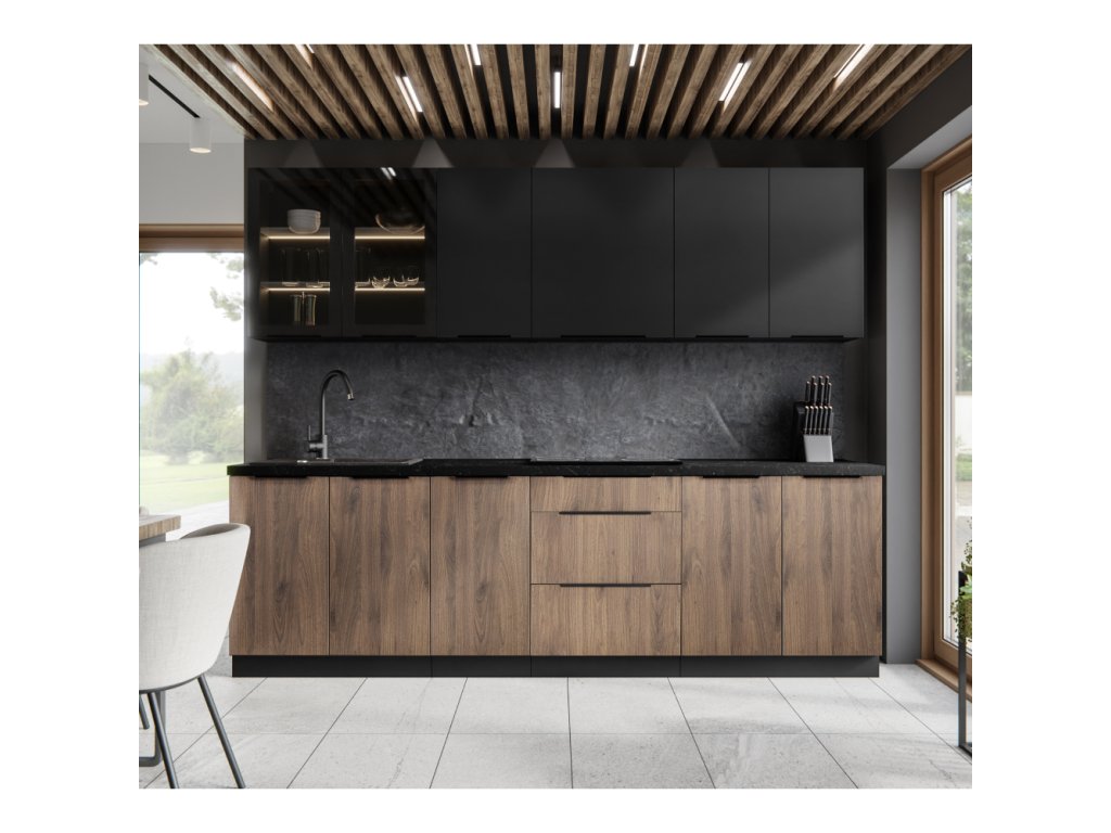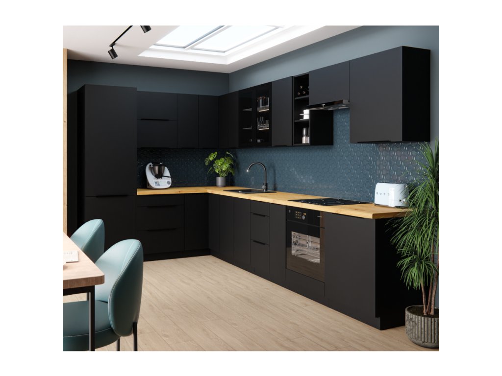 Materiál: laminovaná DTD Farba dvierok: čierna Farba korpus: čierny mat Rozmery (ŠxHxV): 40x57x210 cm Hrúbka materiálu: 1,6 cm S dvierkami Policová Potravinová S úchytkou Farba úchytky: alumíniová S dolnou lištou/soklom Moderný dizajn Systém tichého zatvárania dvierok Dodávané v demonte Spodné sektorové skrinky sú dodávané vrátane dolnej lišty (sokla), bez pracovnej dosky. Pracovnú dosku s hrúbkou 3,8 cm si môžete doobjednať v prevedení Dub artisan za cenu 59 EUR/bm.Balenie (počet kusov : 2)
