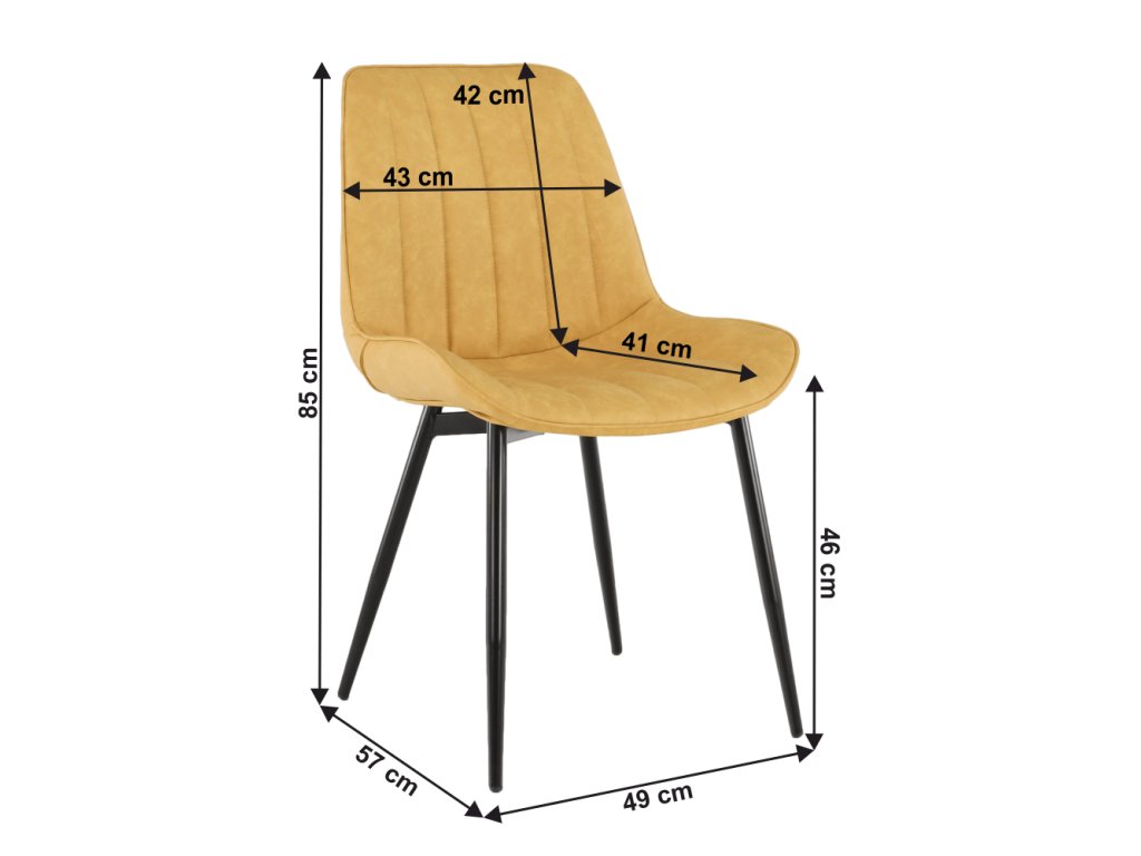 Materiál čalúnenie: ekokoža Farba: žltá Materiál nohy: kov Farba: čierna Rozmery (ŠxHxV): 49x57x85 cm Výška sedu: 46 cm Hĺbka sedu: 41 cm Šírka sedu: 49 cm Šírka chrbtovej opierky: 43 cm Výška chrbtovej opierky: 42 cm Nosnosť: 110 kg Dodávané v demonteBalenie (počet kusov : 1)