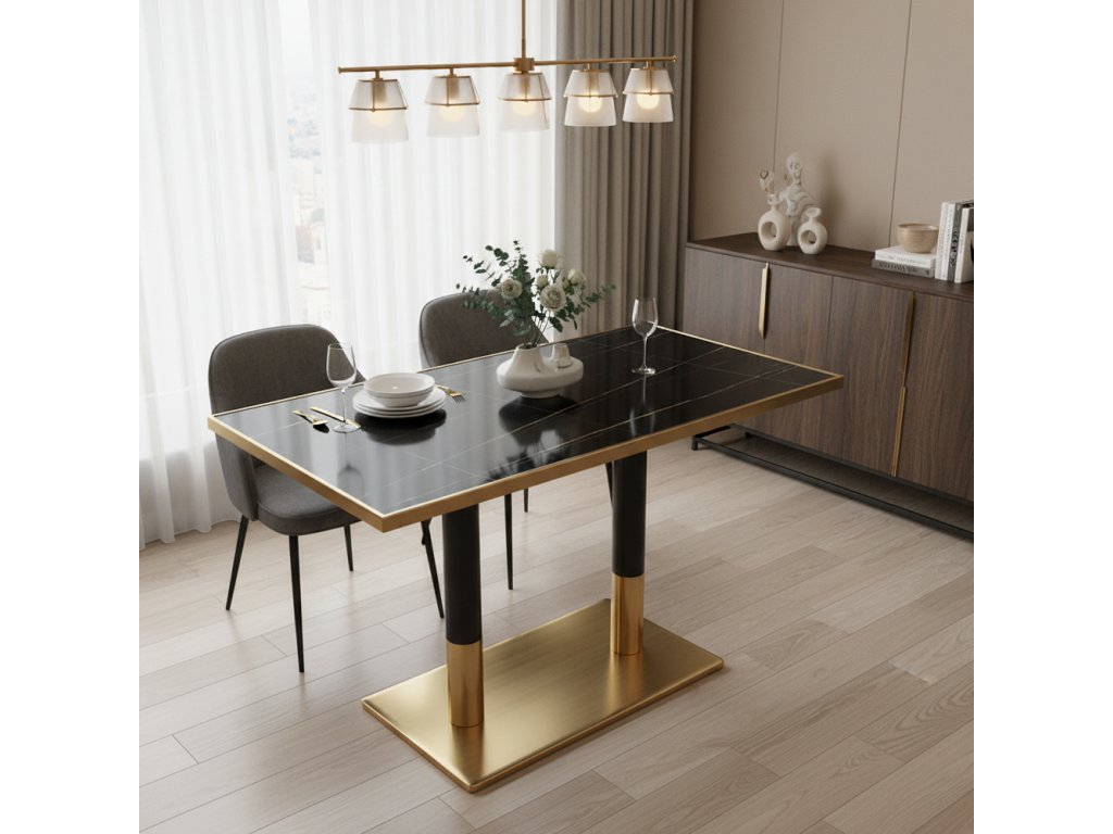 Jedálenský bistro stôl, čierny mramor/čierna/zlatá, 120x70 cm, DARIAN