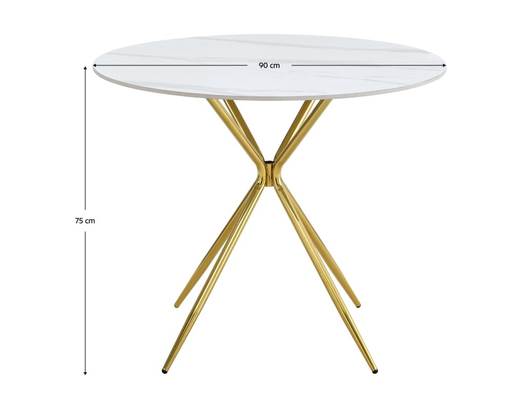 Jedálenský stôl, biely mramor/gold chróm zlatá, priemer 90 cm, MEKNER