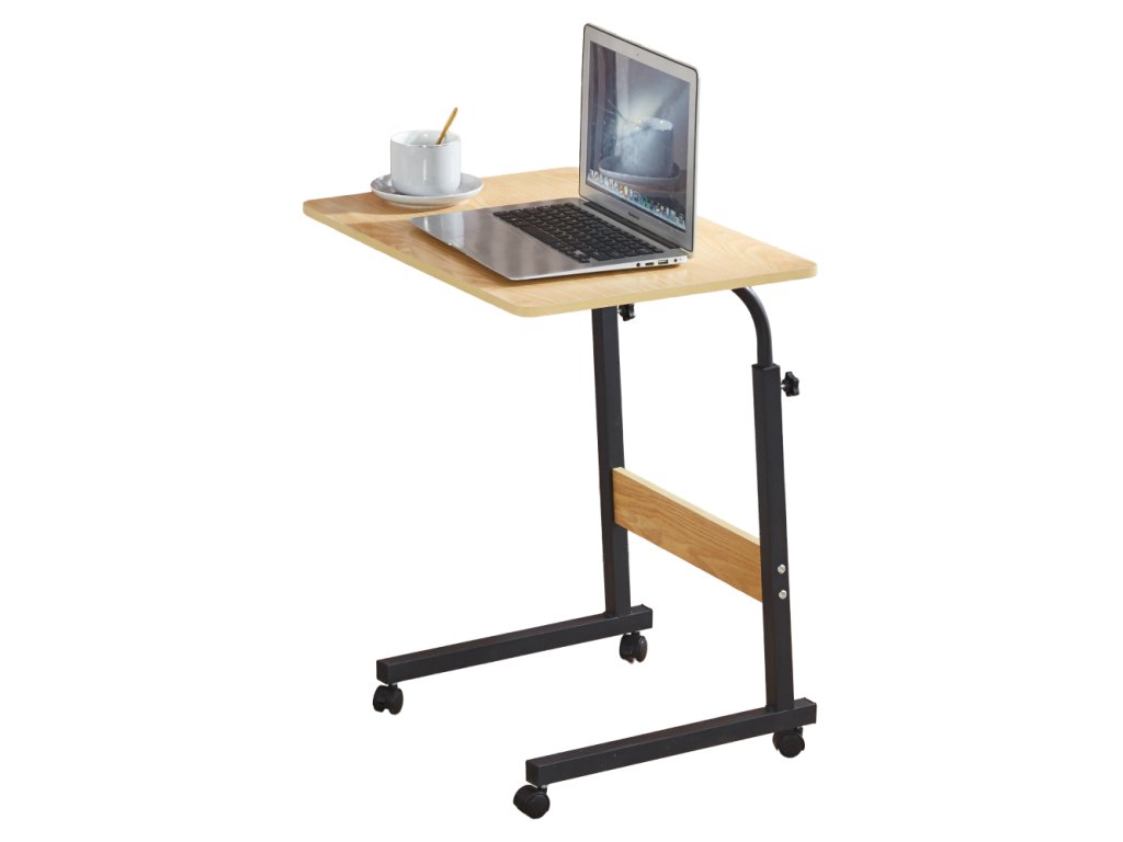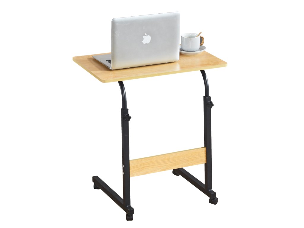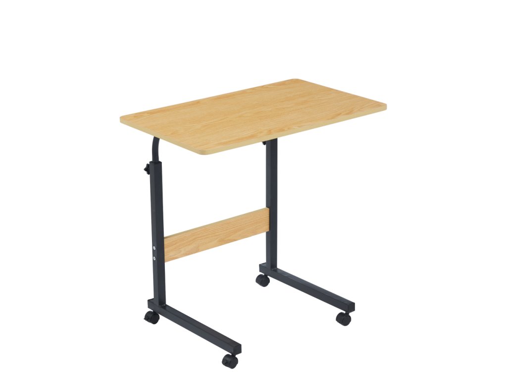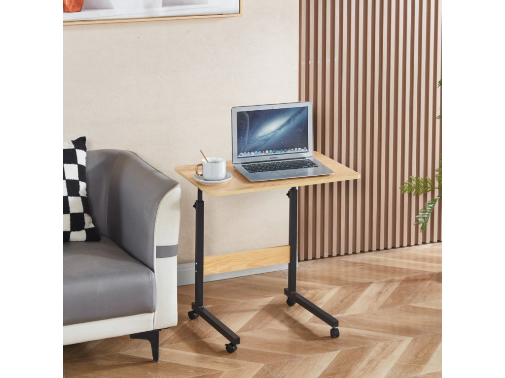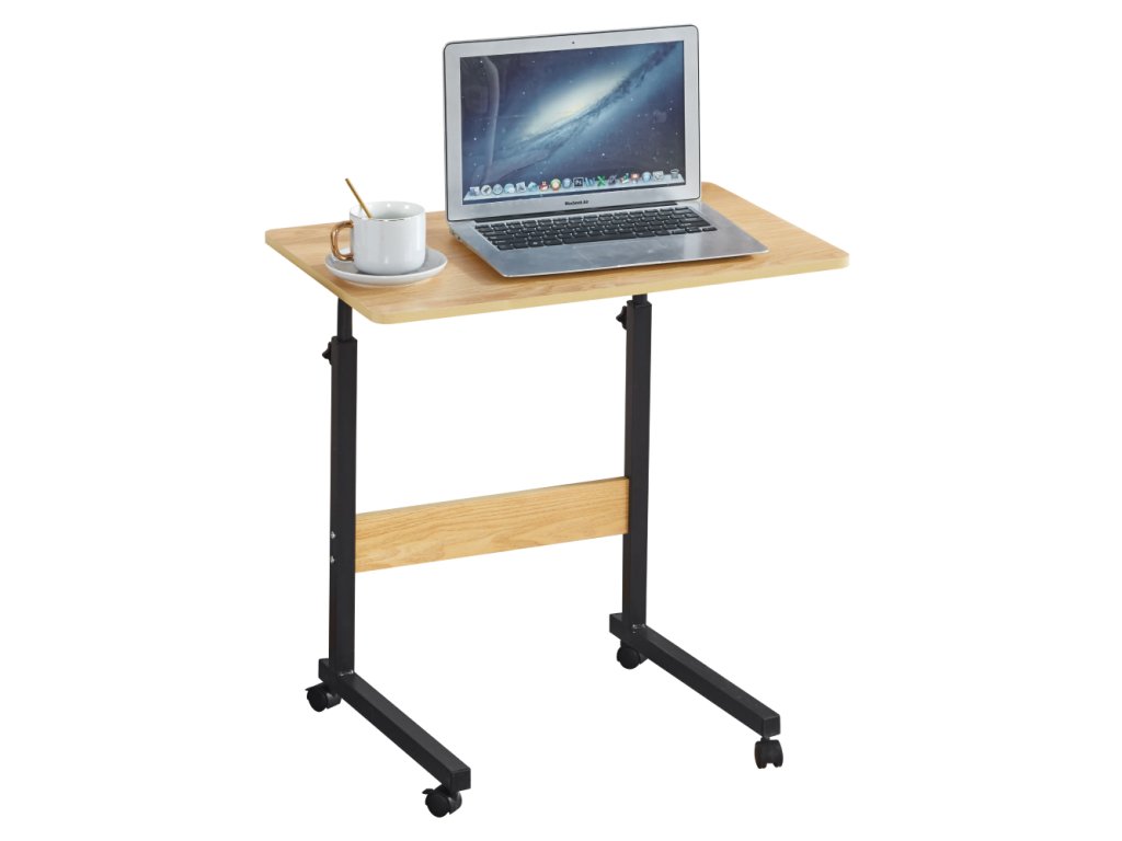 Nastaviteľný PC stôl s kolieskami, dub/čierna, JUSTUS