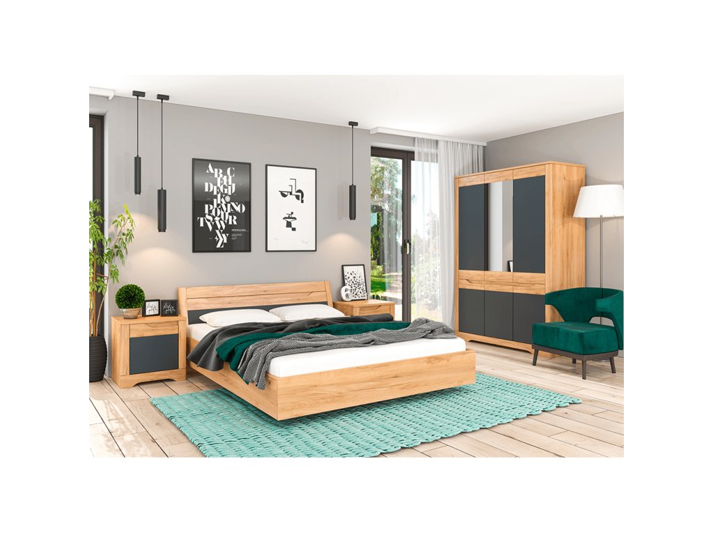 Posteľ, dub craft zlatý/grafit sivá, FIDEL