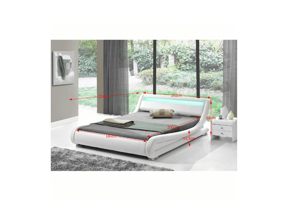 Moderná posteľ s lamelovým roštom a RGB LED osvetlením v čele Materiál: ekokoža Oderuodolnosť textílie podľa testu Martindale: 100 000 oderov Rozmery (ŠxHxV): 202x224x68 cm, plocha na spanie (ŠxD): 180x200 cm Výška postele po rošt: 13,5 cm, Odporúčaná výška matraca: 22-25 cm Nosnosť: 110 kg K posteli doporučujeme zakúpiť matrac o rozmere 180x200 cm na základe našej ponuky. Dodávané v demonte.Balenie (počet kusov : 2)