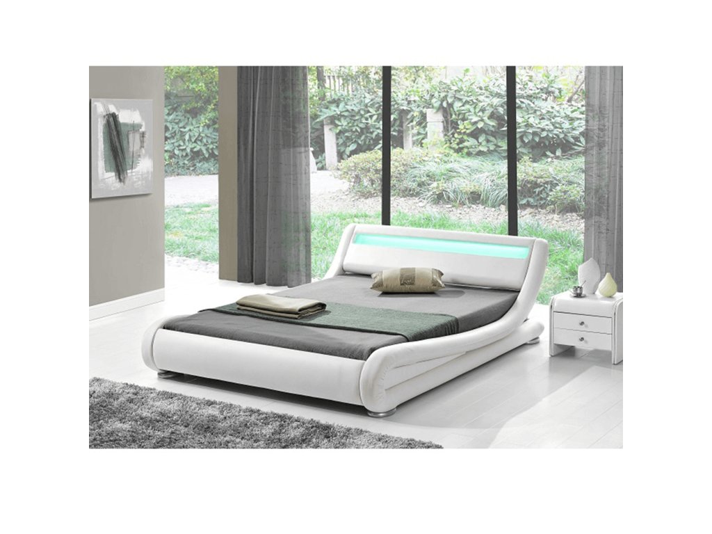 Moderná posteľ s RGB LED osvetlením, biela, 180x200, FILIDA