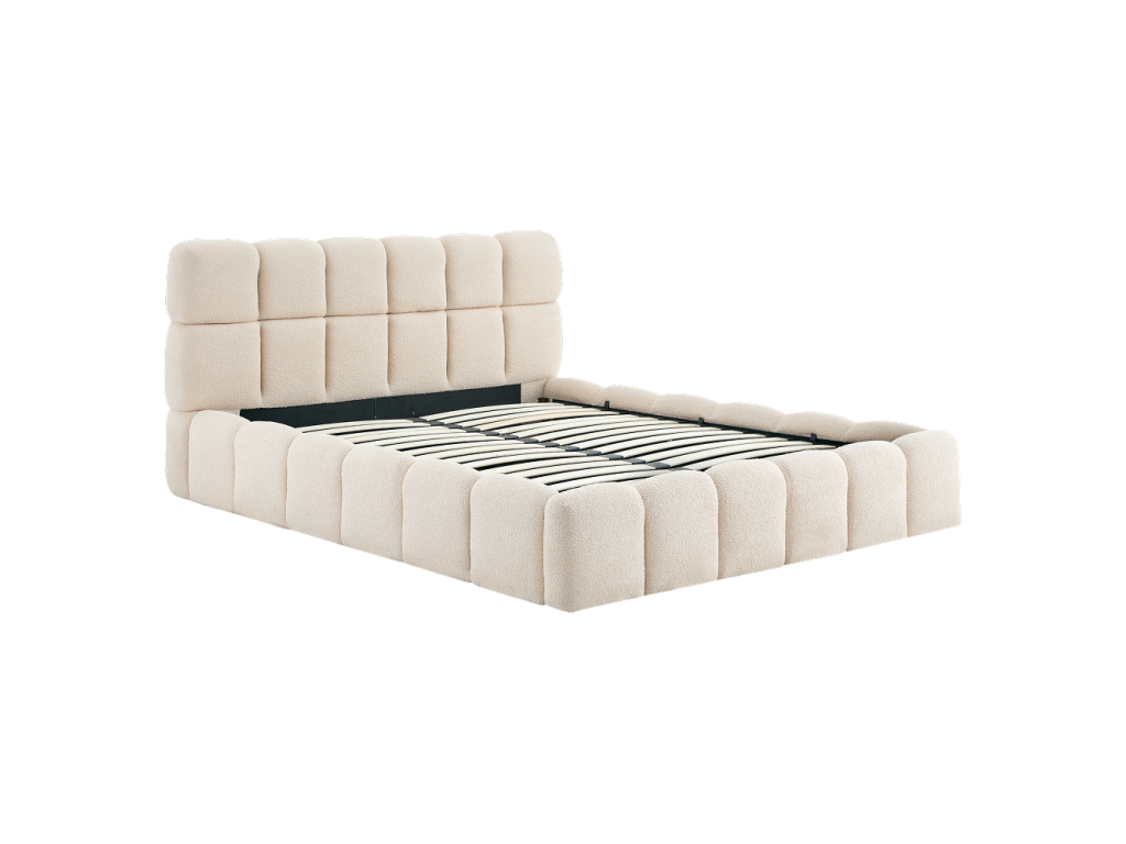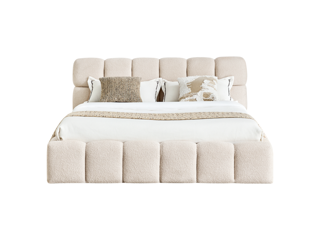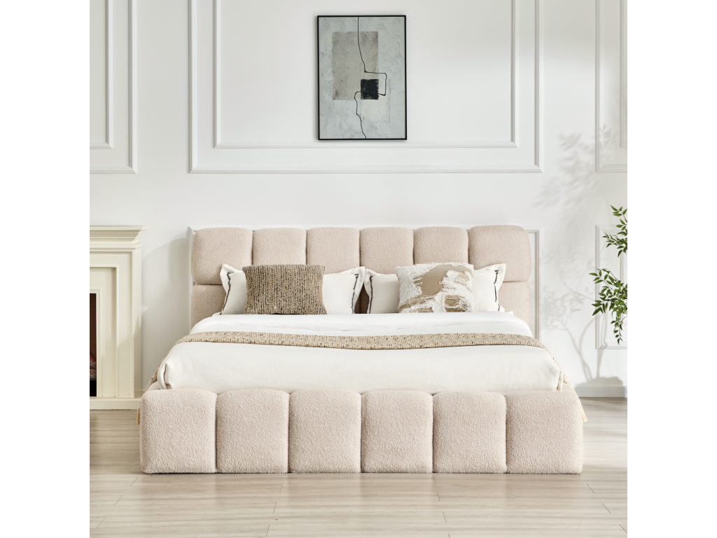 Materiál: látka Bouclé/DTD/pena Oderuodolnosť textílie podľa testu Martindale: 40 000 oderov Farba: béžová Rozmery (ŠxHxV): 188x230x98 cm Plocha na spanie (ŠxD): 160x200 cm Výška po rošt: 24 cm Výška bočnice: 34 cm Šírka bočnice: 11,5 cm Výška čela: 98 cm Výška čela od bočnice: 64 cm Hrúbka čela: 17 cm Hrúbka čela pri nohách: 11,5 cm Nosnosť na lôžko: 120 kg S úložným priestorom S vysokým čelom Prešívané čelo Dodávané s roštom Výklopný rošt s kovovým rámom Plynové piesty Lamely z topoľovej preglejky Dodávané bez matraca Možnosť zakúpiť matrace z našej ponuky Odporúčaná výška matraca: 20 cm Zapustenie matraca: 7 cm Na nožičkách Materiál nožičiek: kov Farba nožičiek: čierna Rozmery nožičiek (ŠxHxV): 4x4x2,4 cm Elegantný dizajn Dodávané v demonteBalenie (počet kusov : 3)