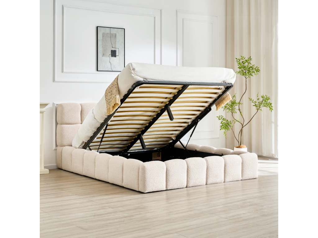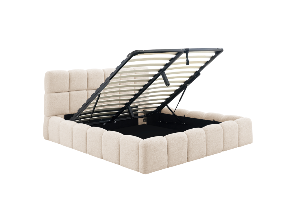 Posteľ s kovovým roštom a úložným priestorom, 160x200, béžová, SORELA