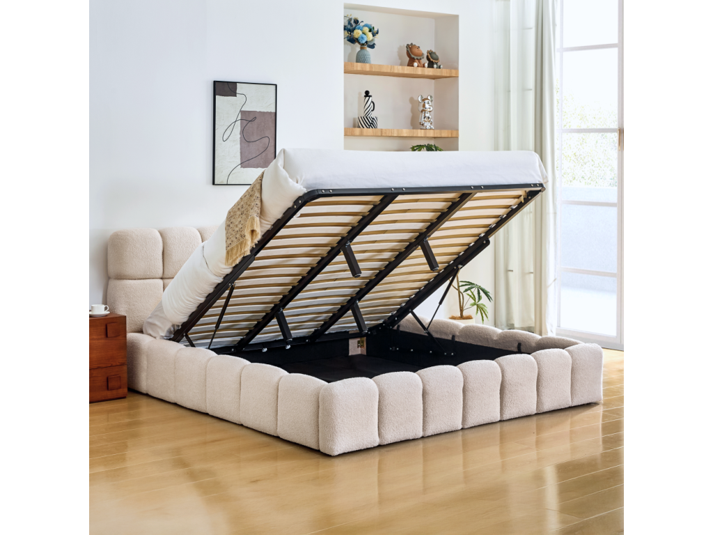 Posteľ s kovovým roštom a úložným priestorom, 180x200, béžová, SORELA