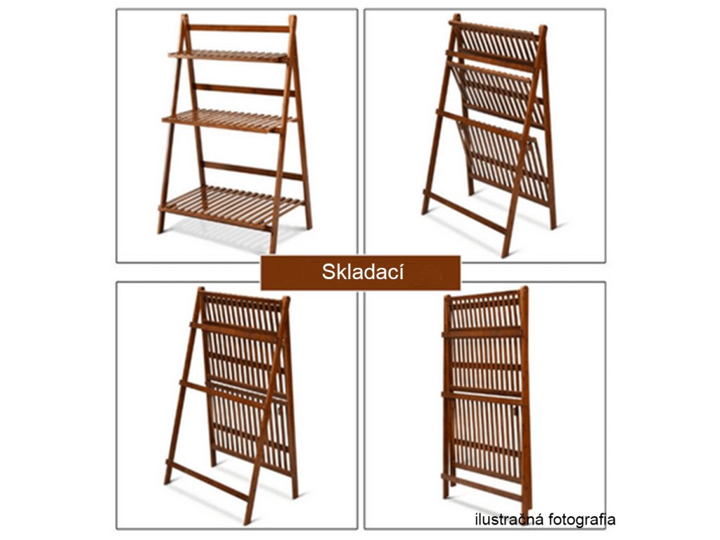 Materiál: bambus Farba: biela Rozmery (ŠxHxV): 70x40x96 cm Nosnosť na policu: 10 kg Tri police Skladací Zložený nezaberie veľa miesta Vhodný do interiéru aj exteriéru Jeden pár rukavíc grátis Set ručného záhradného náradia grátis Dodávané v demonteBalenie (počet kusov : 1)