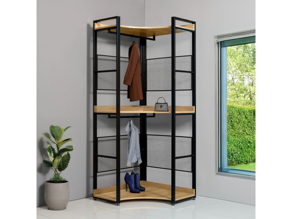 Rohový regál s policou, dub/čierna, KILOS NEW TYP 5