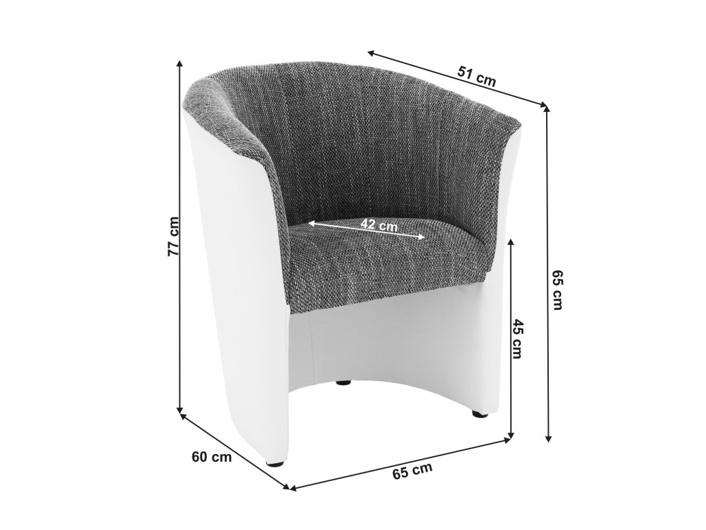 Kreslo CUBA, Materiál: ekokoža/látka Oderuodolnosť textílie podľa testu Martindale: 100 000 oderov Odtieň: biela/sivá Rozmery (ŠxHxV): 65x60x77 cm. Nosnosť: 120 kg Možnosť objednania v látke Savana: 103 Eur, v látke Kronos: 103 Eur, v mikrofáze: 86 Eur, v ekokoži za cenu 106 Eur, v kombinácii látky s ekokožou za cenu 106 Eur alebo v kombinácii látky Soro a Lava za cenu 103 Eur. Pri individuálnej objednávke je potrebné zaplatiť 10% zálohu z danej sumy. Po uhradení zálohy bude Vaša požiadavka zadaná do výroby. Doba dodania 8-10 týždňov.Balenie (počet kusov : 1)