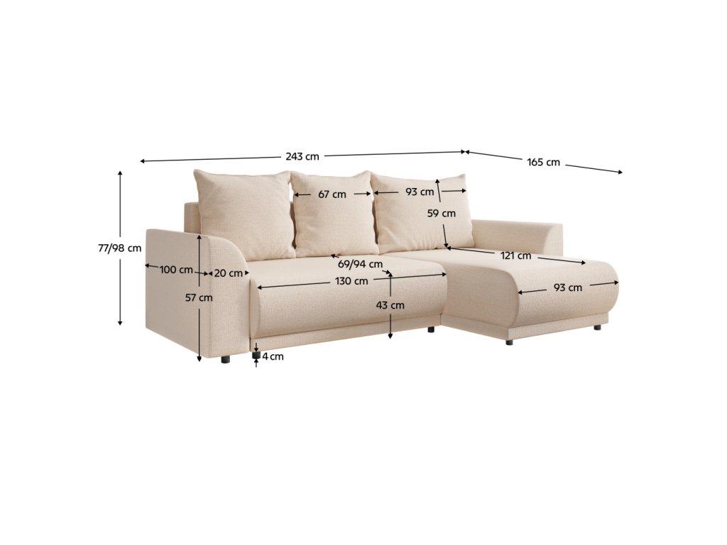 Materiál: látka Aragon 03 Oderuodolnosť textílie podľa testu Martindale: 60 000 oderov Farba: béžová Rozmery (ŠxHxV): 243x165x77/98 cm Plocha na spanie (ŠxD): 140x223 cm Výška sedu: 43 cm Hĺbka sedu: 69/94 cm Rozmery otomanu (ŠxH): 93x121 cm Rozmery opierky na ruku (ŠxHxV): 20x100x57 cm Šírka sedacej časti: 130 cm Univerzálna Celočalúnená Rozkladacia Rohová S úložným priestorom Na nožičkách Materiál nožičiek: plast Farba nožičiek: čierna Výška spodného priestoru od podlahy: 4 cm Výplň: pružina falista/pur pena S vankúšmi Rozmery väčší vankúš (ŠxV): 93x59 cm Rozmery menší vankúš (ŠxV): 67x59 cm Praktická Moderná Dodávané v demonte Ponúkame vám možnosť vybrať si zo 7 farebných prevedení látky Aragon za cenu 749 Eur. Pri individuálnej objednávke je potrebné zaplatiť 20% zálohu z danej sumy. Po uhradení zálohy bude Vaša požiadavka zadaná do výroby. Dodacia lehota 6-8 týždňov.Balenie (počet kusov : 4)