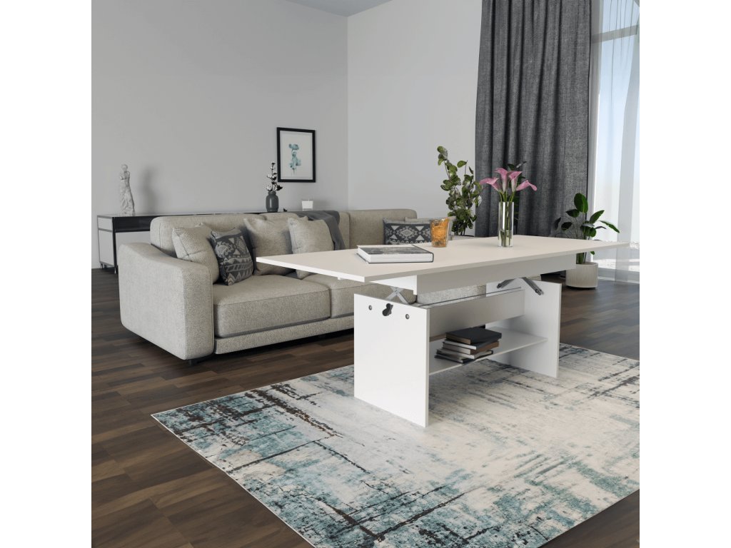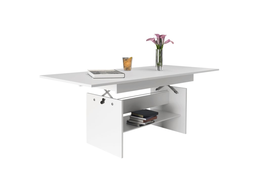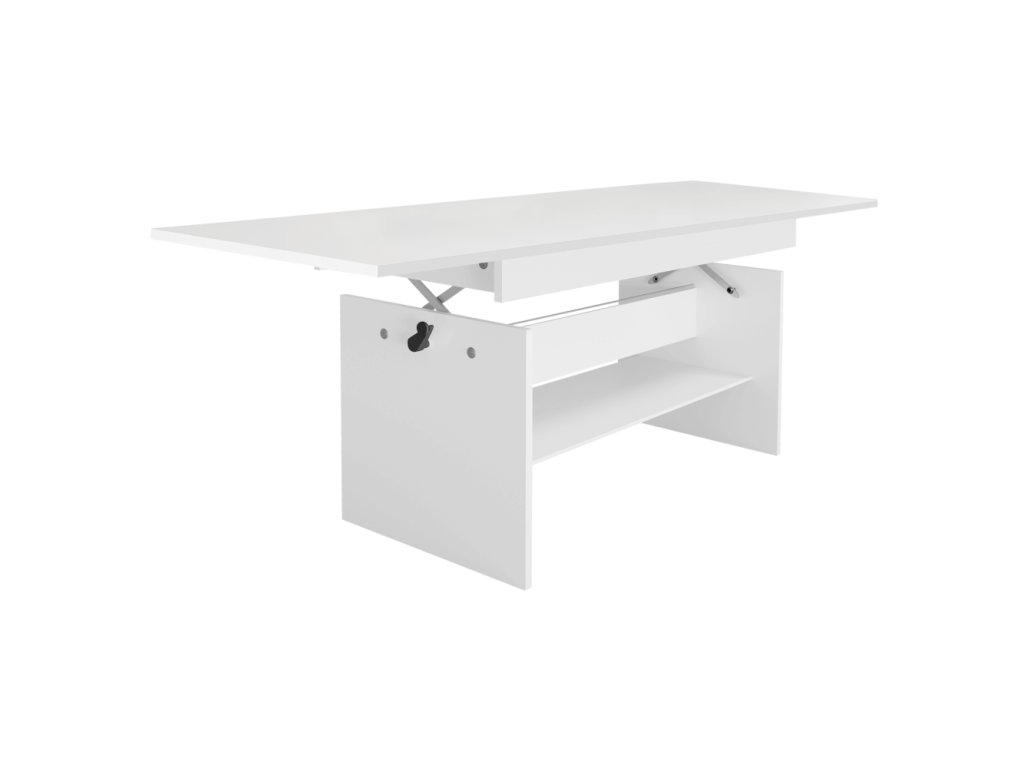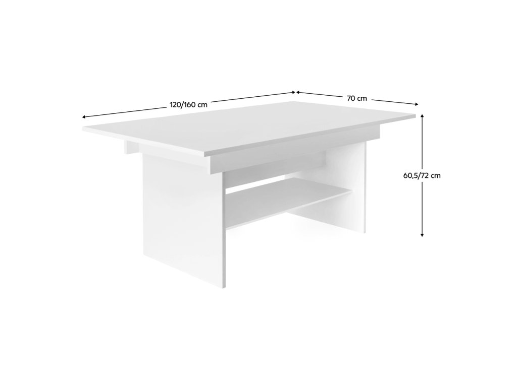 Materiál: DTD laminovaná Farba: biela Rozmery (ŠxHxV): 120-160x70x60,5-72 Hrúbka DTD laminovanej: 1,6 cm Konferenčný/jedálenský Rozkladací Výškovo nastaviteľný Disponuje zdvíhacím mechanizmom S policou Rozmery police: 88x30 cm Vhodný pre 4-6 osôb Nosnosť vrchnej dosky: 20 kg Moderný Dodávané v demonteBalenie (počet kusov : 3)