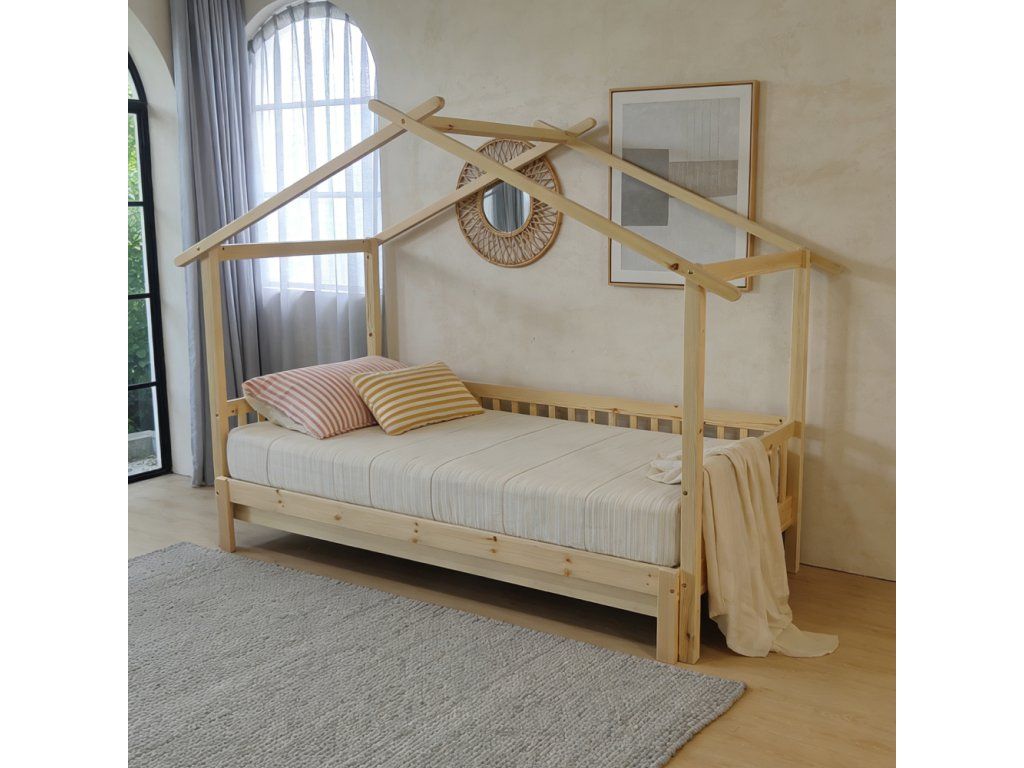 Materiál: masívne borovicové drevo/preglejka Farba: prírodná Rozmery (ŠxHxV): 233x100,5x170 cm Plocha na spanie (ŠxD): 90x200 cm Plocha na spanie po rozklade (ŠxD): 180x200 cm Výška po rošt: 22 cm Nosnosť na osobu: 95 kg Rozkladacia Výsuvná prístelka Na nožičkách Výška nožičiek: 20 cm Posteľ v tvare domčeka Dodávaná s dvoma preglejkovými rolovacími roštmi Dodávaná bez matraca Možnosť zakúpiť matrac z našej ponuky Rozmer matraca na prístelku: 90x200 cm Odporúčaná maximálna výška matraca: 13 cm Zapustenie matraca: 3,7 cm Praktická Dodávaná v demonteBalenie (počet kusov : 2)