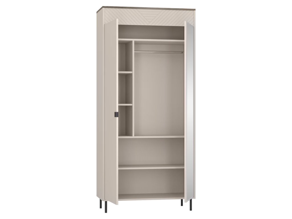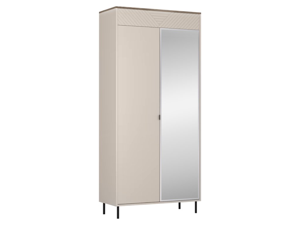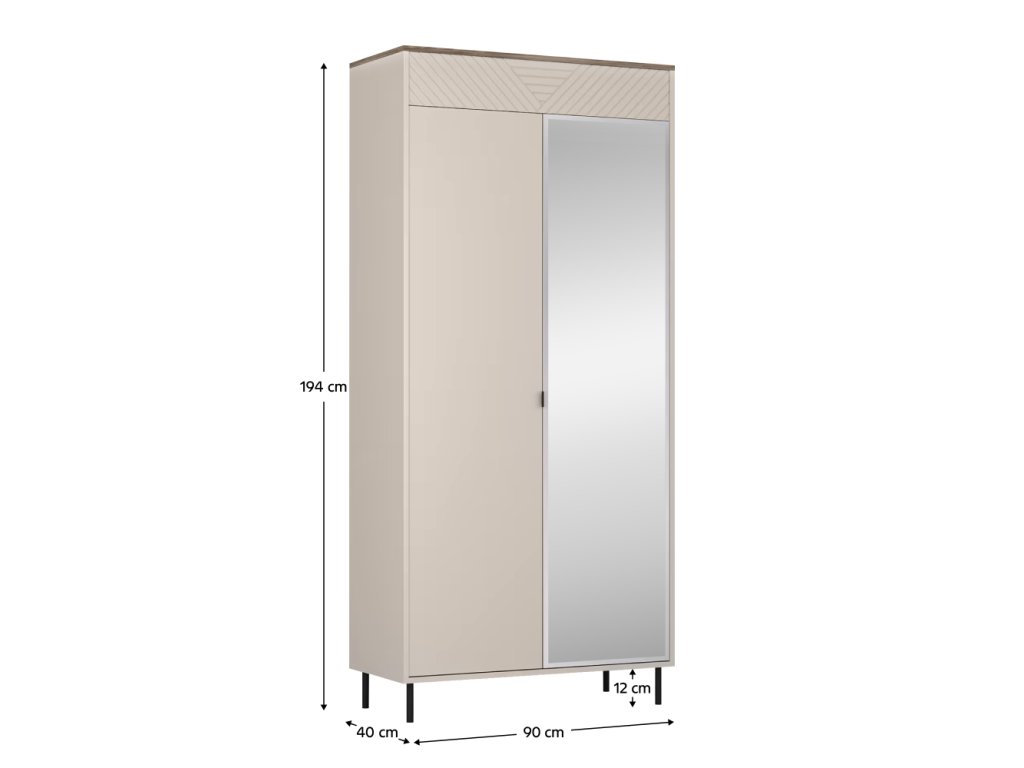 Materiál: laminovaná DTD/fóliovaná MDF/ABS hrany/sklo Farba: kašmír/dub castello Rozmery (ŠxHxV): 90x40x194 cm Hrúbka materiálu: 1,6 cm So zrkadlom Dvojdverová Výsuvná vešiaková tyč Policová S úchytkami Materiál úchytiek: kov Farba úchytiek: čierna Na nožičkách Materiál nožičiek: kov Farba nožičiek: čierna Výška nožičiek: 12 cm Nosnosť vešiakovej tyče: 5 kg Nosnosť police: 5 kg Dekoratívne dvierka Moderný dizajn Odporúčame pripevniť k stene Dodávané v demonteBalenie (počet kusov : 2)