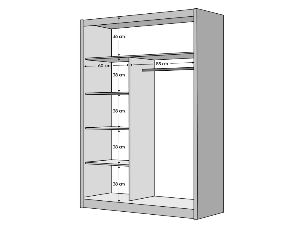 Materiál: DTD laminovaná/ABS hrany/MDF lišty/sklo Farba: dub craft/čierna Rozmery (ŠxHxV): 150x61x215 cm Hrúbka DTD: 1,6 cm Hrúbka ABS: 0,045 mm Nosnosť police: 10 kg Nosnosť dlhej police: 20 kg Nosnosť vešiaka: 15 kg Nosnosť šuplíka: 3 kg S posuvnými dverami S úchytkami So zrkadlom Policová časť Vešiaková časť Dvojdverová Dodávané v demonteBalenie (počet kusov : 3)