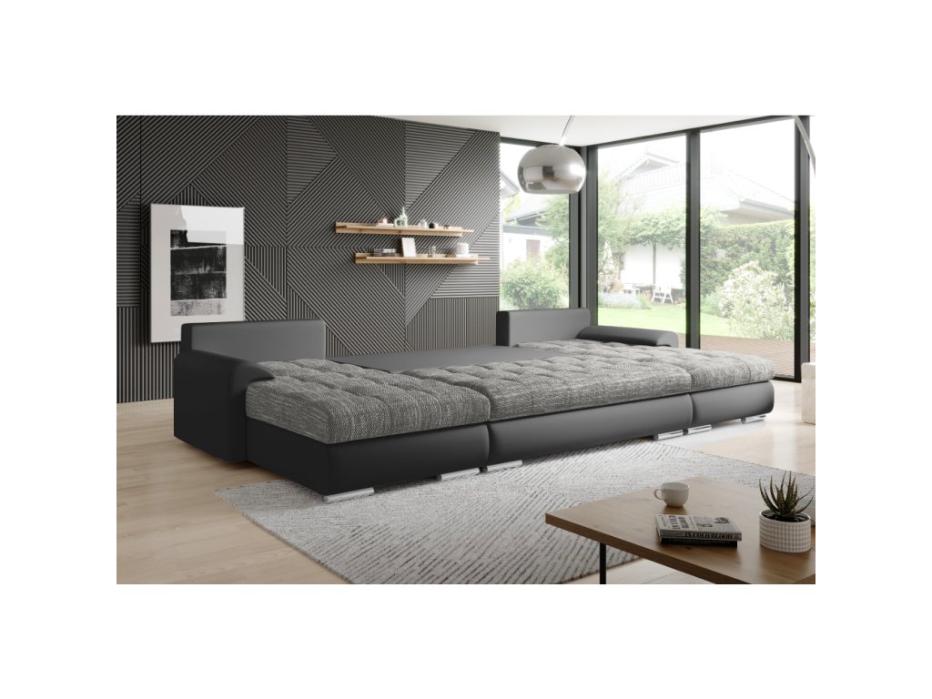 Univerzálna sedacia súprava, ekokoža čierna/sivý melír, TOLITA U UNI