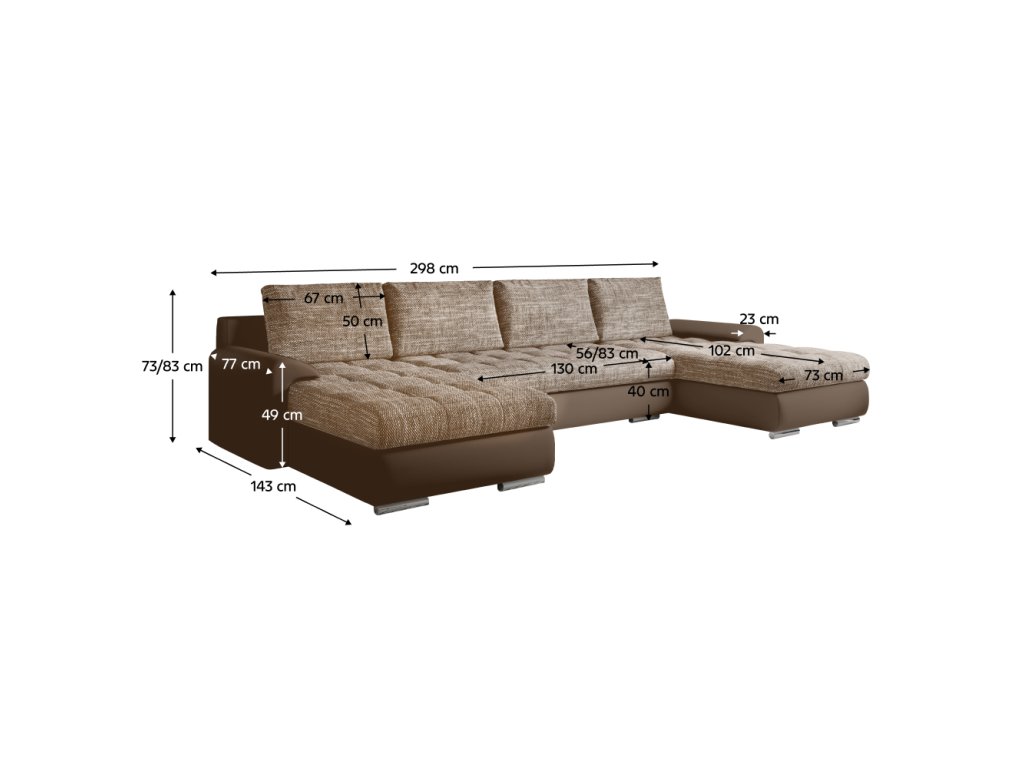 Materiál: látka Berlin 03/ekokoža Oderuodolnosť textílie Berlin podľa testu Martindale: 55 000 oderov Oderuodolnosť ekokože podľa testu Martindale: 100 000 oderov Farba: hnedý melír/hnedá Rozmery (ŠxHxV): 298x143x73/83 cm Výška sedu: 40 cm Hĺbka sedu: 56/83 cm Rozkladacia Plocha na spanie (ŠxD): 128x241 cm Šírka sedacej časti: 130 cm Rozmery opierky na ruku (ŠxHxV): 23x77x49 cm Rozmery otomanu (ŠxH): 73x102 cm Na nožičkách Materiál nožičiek: plast Farba nožičiek: strieborná Výplň: pružina falista/PUR pena Tvar U Univerzálna Celočalúnená Rohová S úložným priestorom Dodávané s vankúšmi Rozmery vankúšov (ŠxV): 67x50 cm Ozdobné lemovanie Dodávané v demonte Možnosť individuálnych objednávok sedacej súpravy v 4 farebných prevedeniach ekokože v kombinácii s 3 farebnými prevedeniami látky Berlin v cene 989 Eur. Pri individuálnej objednávke je potrebné zaplatiť 20% zálohu z danej sumy. Po uhradení zálohy bude Vaša požiadavka zadaná do výroby. Dodacia lehota 6-8 týždňov.Balenie (počet kusov : 5)