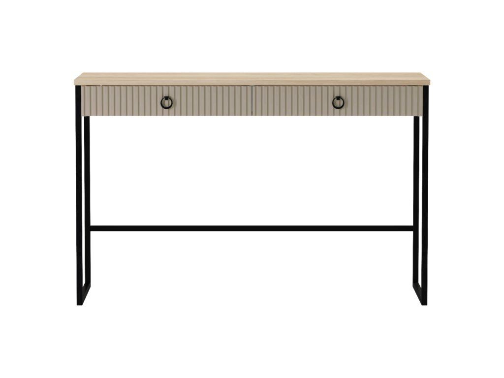 Materiál: laminovaná DTD/fóliovaná MDF Farba: sivohnedá Taupe/dub silverjack Rozmery (ŠxHxV): 118,4x45x76 cm Hrúbka materiálu DTD: 1,6-1,8 cm Hrúbka materiálu MDF: 1,9 cm Dve zásuvky Nosnosť vrchnej dosky: 10 kg Nosnosť zásuvky: 3 kg S úchytkami Materiál úchytiek: kov Farba úchytiek: matná čierna Na nožičkách Výška nožičiek: 12 cm Materiál nožičiek: plast Farba nožičiek: matná čierna Dekoratívne frézované dvierka Moderný dizajn Odporúčame pripevniť k stene Dodávané v demonteBalenie (počet kusov : 2)